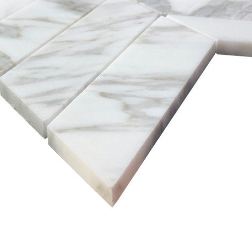 Calacatta Gold Italian Marble 2" x 8" Chevron Mosaic Tile